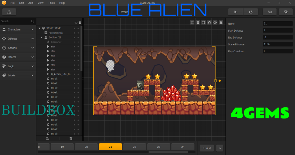 Blue Alien Buildbox Game